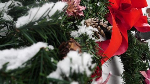 - 1000 Beautiful Christmas Lights Videos Pexels Free Stock Videos : Cold Christmas Decoration With Tree And Snow Falling In The Front.